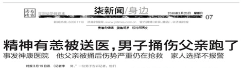 图:济南时报报道《精神有恙被送医,男子捅伤父亲跑了》